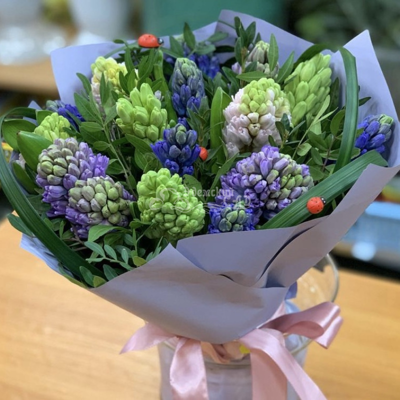Этот букет источает такой аромат весны как куст сирени . Восхищение, благоухание и послание о любви .
